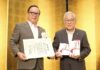 (左)社会福祉法人山陽新聞社会事業団(江見 肇専務理事)、(右)千原行喜理事長、(奥)三澤幸芳専務理...