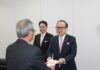 岡山県パチンコ・パチスロ業防犯協力会(会長 千原行喜)は、2017(平成29)年9月20日に岡山県警と「犯罪の起きにくい社会づくりの推進に関する協定」を締結し、協定に基づいて、岡山県防犯協会を通じて岡山県警察へソーラー式屋外用センサーライト(300台)を寄贈し、その後検討会を行いました。