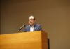 セミナーの冒頭、あいさつをする千原行喜理事長2025年10月2日(金)、当岡山県パチンコ・パチス...